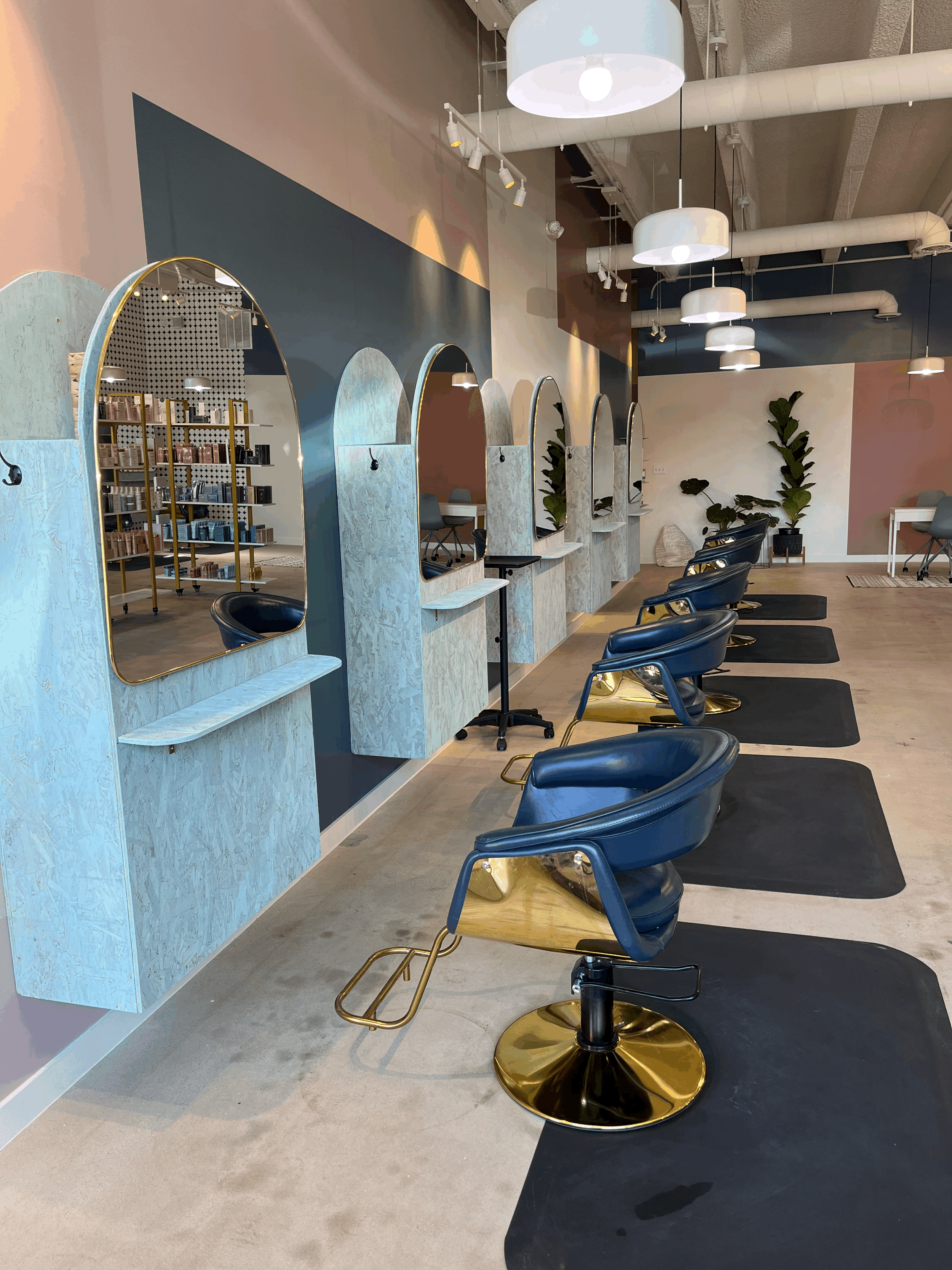 This past year, while taking some time off from design while expecting the arrival of our 1st child, a very good friend of mine came to me about helping design her new hair salon. i was reluctant about how much i could do during this time but it worked out perfectly for them as they were going to be doing a lot of the work themselves and just needed me to space plan and have hard copy drawings for the city and their contractors, some help with color choices and to give some over all design advice about lighting and furniture within the salon. kera (owner & stylist) and i started off the whole process of the layout in the empty space taping the floor off with ideas of how big her stylist's stations should be in order to understand the flow of the space. after accomplishing the size and aesthetics of the stylist's stations we quickly moved to picking some paint colors for the space. choosing wall colors for a salon can be tricky since the stylist's are also working with hair color everyday and the wall colors can reflect color onto the hair making it difficult for the stylist. i went with an overall warmer white and a rich lemon grass accent wall in the front of the salon that would tie in with the stylist's stations that would be made out of plywood. after these couple of tasks i really just consulted for kera on her choices of furniture, equipment and lighting for the salon. together we made a great team and the salon turned out so beautifully!